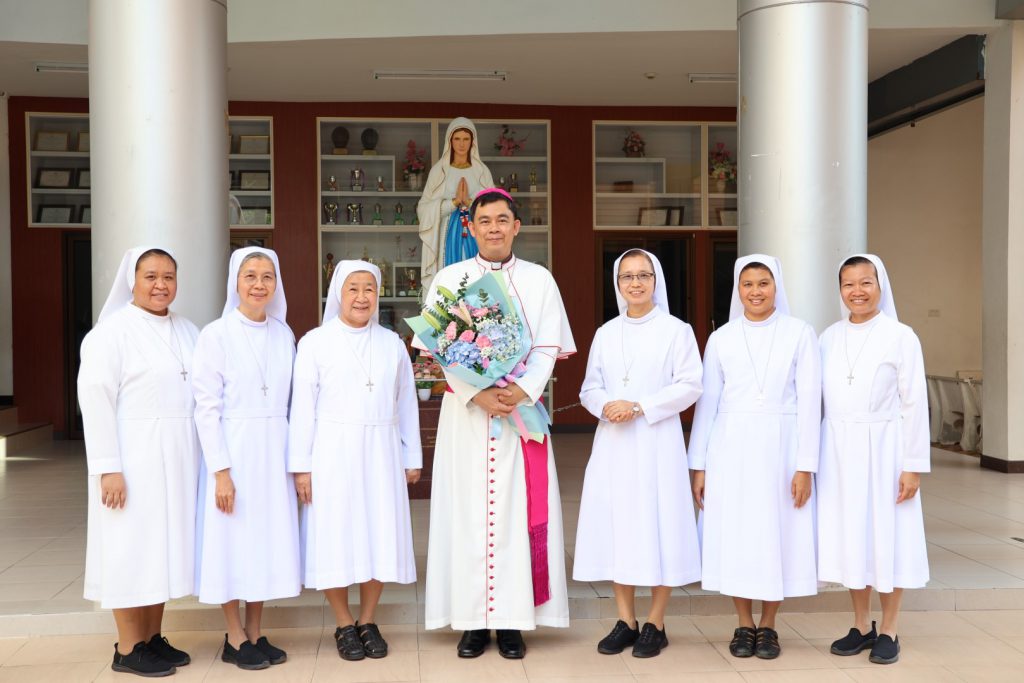 ในการมาเยี่ยมนี้ท่านได้พบปะคณะครู นักเรียนโรงเรียนธิดานุเคราะห์ และให้ข้อคิดสำหรับวันปีใหม่ คือการกล่าวแต่สิ่งที่ดี พูดบวก เราก็จะได้รับสิ่งดี ๆ กลับมาสู่เราเอง นอกจากนั้นยังได้แบ่งปันงานอภิบาลในประเทศกัมพูชา ลาว และเวียดนามให้สมาชิกได้ทราบความเป็นไป ณ ปัจจุบัน ก่อนเดินทางกลับท่านได้เยี่ยมชมบริเวณอาคารเรียน รวมทั้งอาคาร “เอาซีลีอุม” ที่กำลังสร้างอยู่ในขณะนี้ และอวยพรบรรดาซิสเตอร์หน้าพระรูปแม่พระองค์อุปถัมภ์ …more photos…